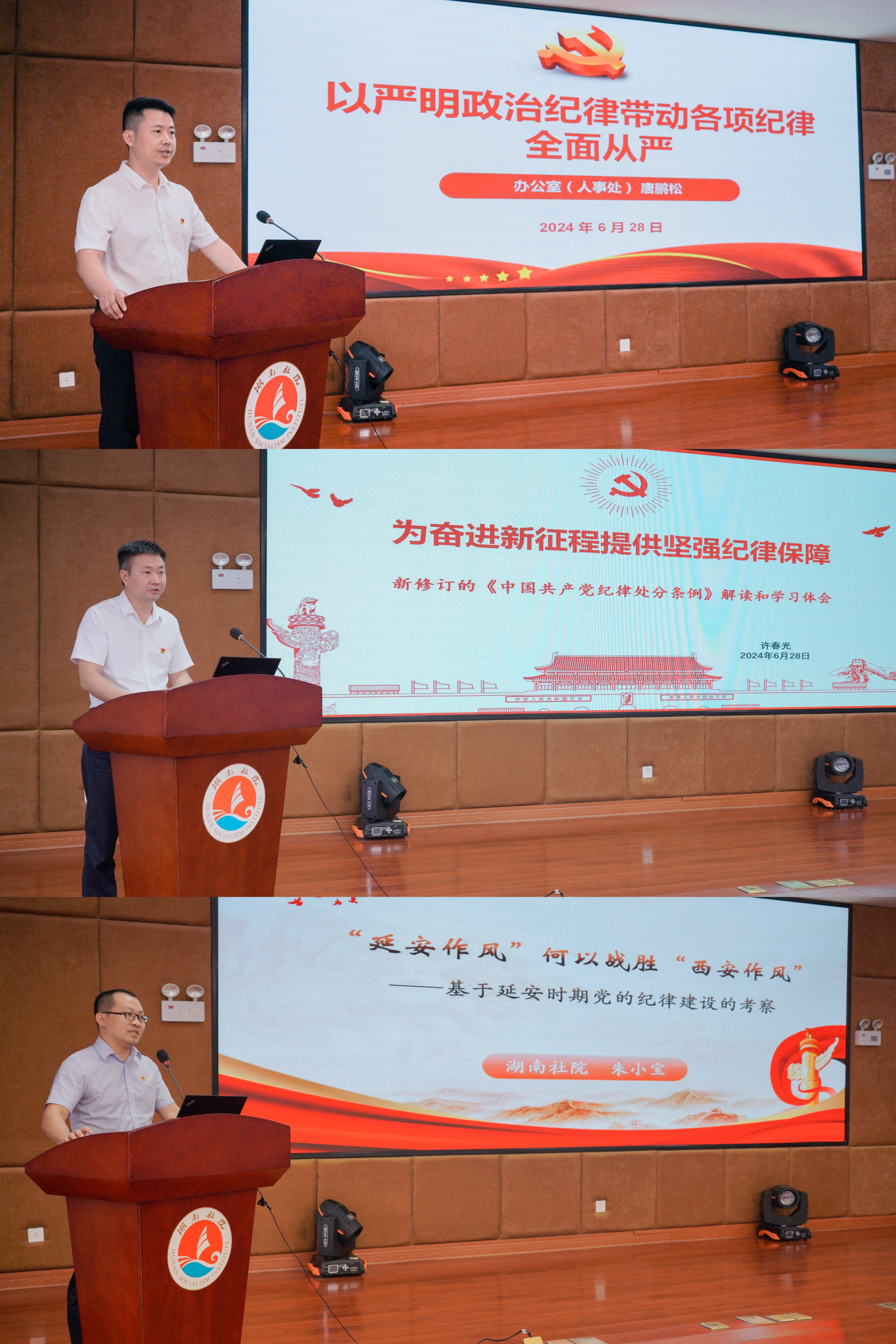 三位同志围绕加强党的纪律建设,结合各自所思所悟所得进行分享,大家纷纷表示,要进一步强化纪律自觉,深入学习领会习近平总书记关于党的自我革命、关于全面加强党的纪律建设的重要论述,原原本本、逐章逐句学《条例》,将遵规守纪内化于心、外化于行,切实把自己摆进去、把工作摆进去、把职责摆进去,进一步强化纪律意识、加强自我约束、提高免疫能力,增强政治定力、纪律定力、道德定力、抵腐定力,始终做到忠诚干净担当。