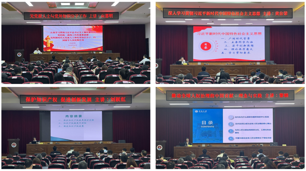 本期培训班安排了11场专题讲座、2次现场教学、2次讨论座谈以及自学等多种方式,邀请了包括来自省政协、省委统战部、省社院、省知识产权局以及中南大学、湖南大学、湖南医药学院等多领域领导专家,围绕政治理论、统战工作实践、科技创新前沿、国际视野等多个维度进行辅导,拓宽了学员们的知识视野和思维边界。