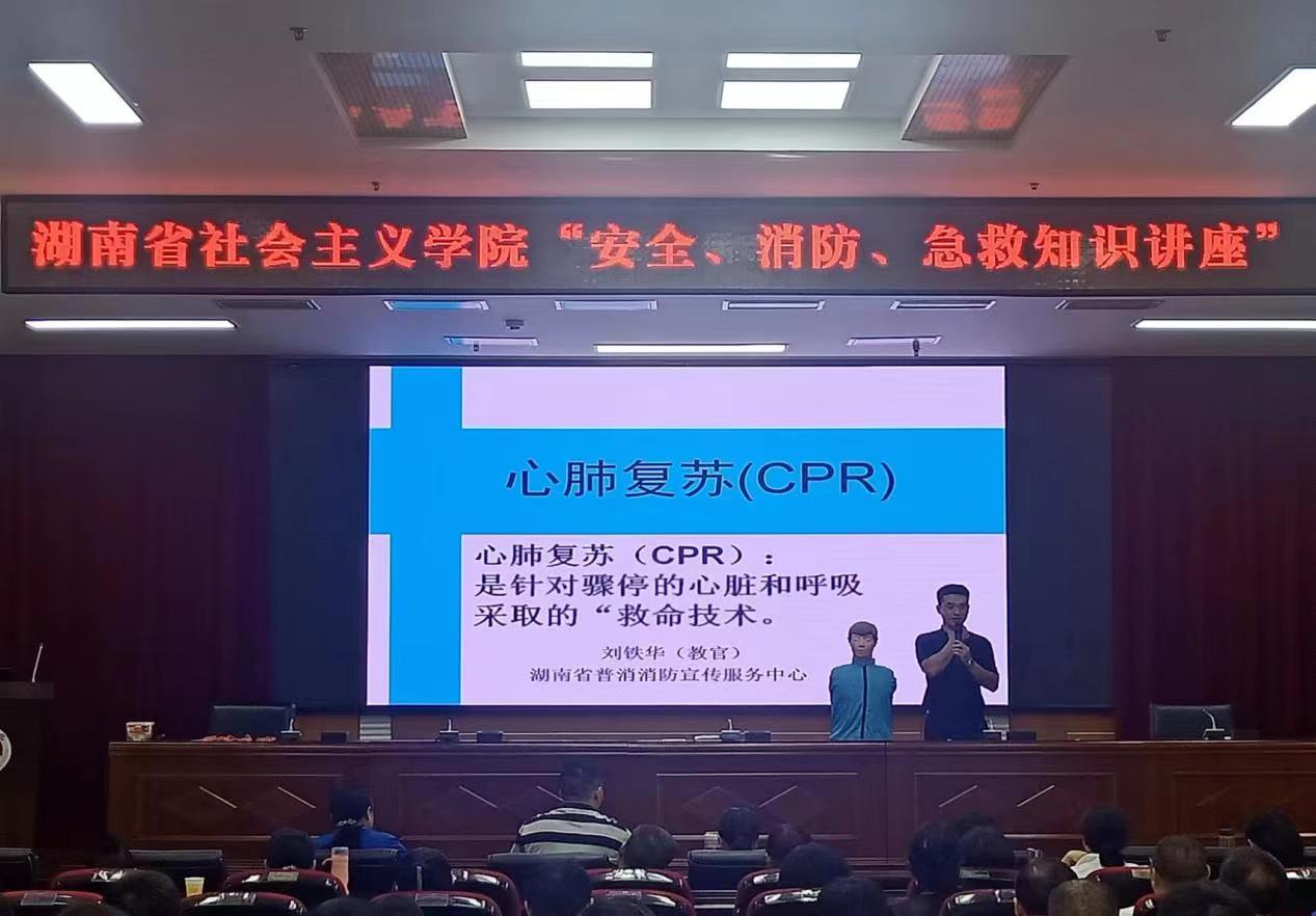 我院邀请了湖南普消辰安消防安全服务中心刘教官为我们讲解了心肺复苏、海默力克等急救方法,深刻剖析近年来在我省发生的火灾事故案例,使全体教职员工的消防法规意识得到了增强,火灾逃生及急救能力得到了提升。在今后的工作中,我们将进一步夯实学院消防安全主体责任,不断健全安全管理机制,完善安全设施建设,提高安全防控能力,最大限度减少和杜绝火灾等安全事故的发生,积极创建平安社院,为我院高质量发展提供坚强的安全保障。