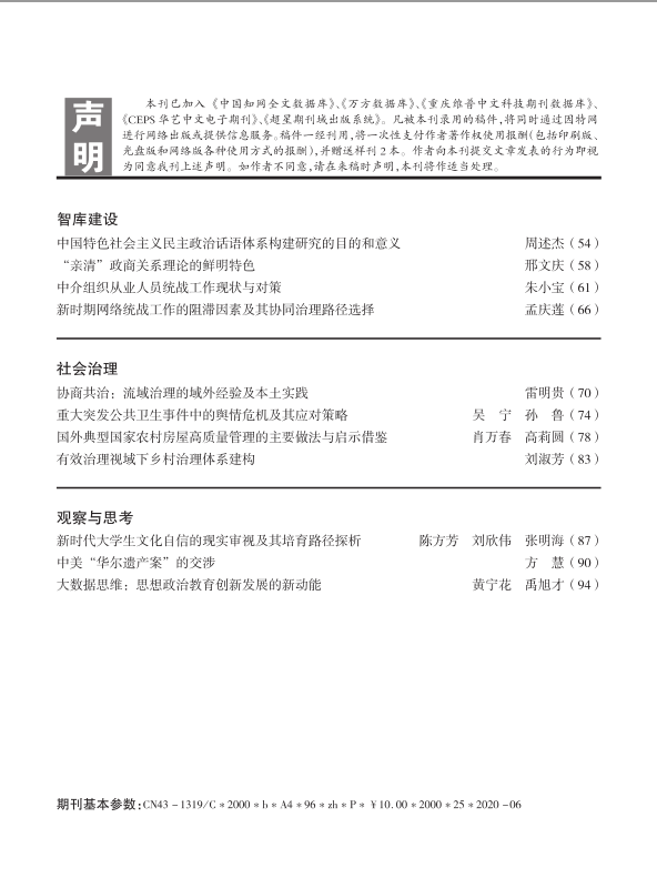 湖南社院学报2020年第2期封面及目录
